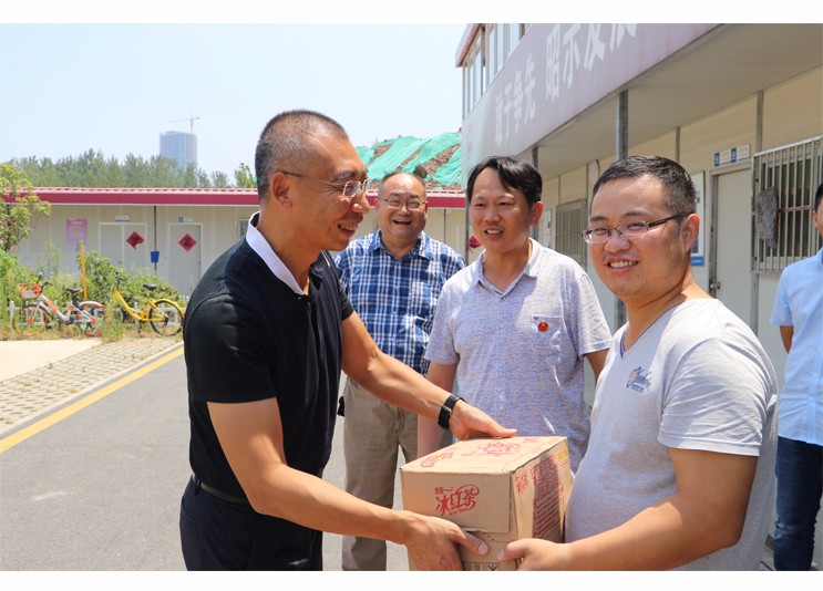 7月26日中午,公司董事长王颖哲一行冒着40摄氏度的酷暑前往清溪路净水厂,看望慰问了项目部工作人员。王颖哲董事长参观了项目建设工地,并详细询问了项目建设进展、工地建设时间安排等,嘱咐现场项目负责人要合理安排各项工作,确保在大家健康及安全生产的前提下,抓好工程进度。王颖哲董事长给项目部工作人员送上了一份防暑降温慰问品。