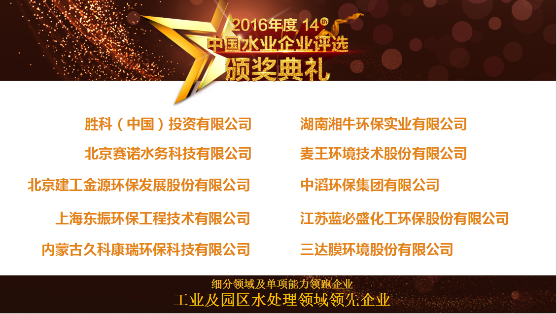 在本届论坛上还颁发 了2016年度水业企业评选相关奖项。国祯环保凭借与资本市场良好对接,不断创新模式,具备良好的投资回报率、社会责任感强等实力,在200多个参选企业中脱颖而出,获得2016年度“中国水业最具投资价值上市公司”殊荣,麦王环境荣获“细分领域及单项能力领跑企业”殊荣。
