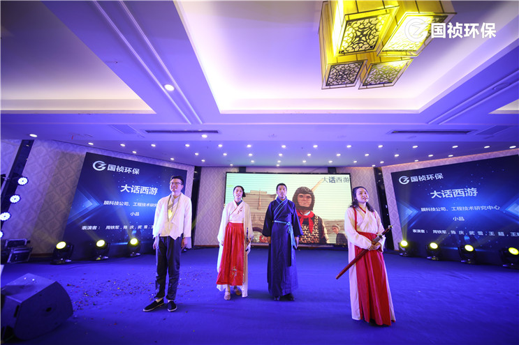 颁奖典礼也穿插了很多员工自导自演的节目。既有活力四射的舞蹈《国祯范儿》《国祯练习生》,又有独具韵味的《风月》;评弹《秦淮景》让我们领略到了金陵十里秦淮的繁华景象;歌伴舞《让国祯更美丽》、歌曲《巡检归来》、《甲大人、乙大人》、诗朗诵《我的南方和北方》则展示出了国祯人的日常;《大话西游》让我们看到投身环保的至尊宝;歌曲串烧《千千阙歌》《无所谓》《夜半小夜曲》余音绕梁、悦耳动听;器乐串烧《草原新牧民》《我只在乎你》《南方姑娘》则让我们现场感受中西不同乐器之魅力;影子剧《呼吁》通过黑与白的“肢体”呼吁我们保护环境的重要性;诗朗诵《保护地球妈妈》则通过四个国祯二代发出保护地球的心愿。与会观众纷纷通过手机记录一个个精彩的瞬间,与坚守在工作一线的同事或远在他乡的亲人分享喜悦。颁奖晚会在歌伴舞《我和我的祖国》中落下帷幕。