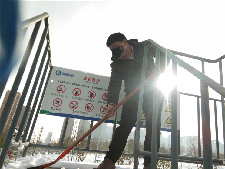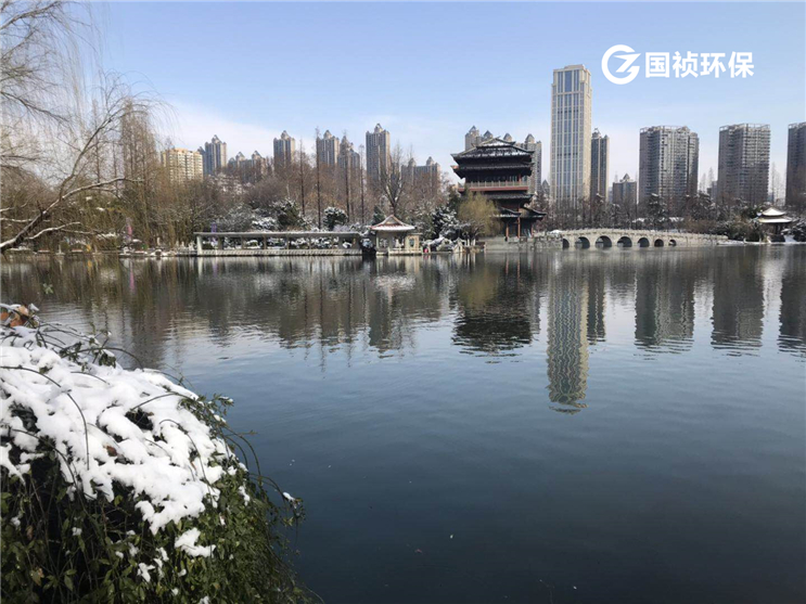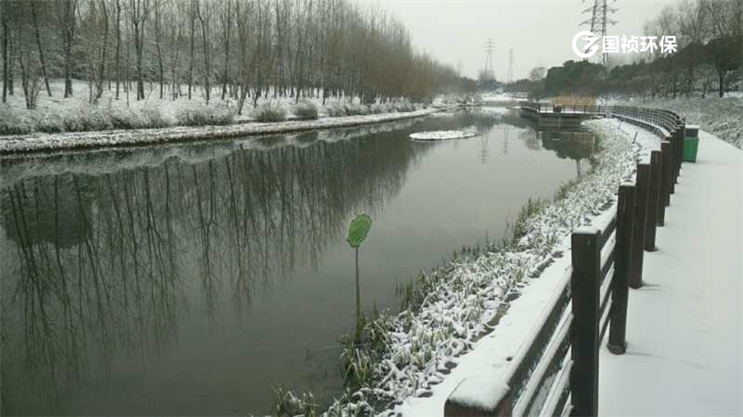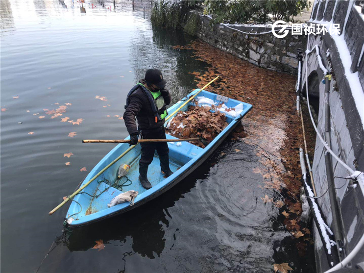 合肥市逍遥津公园水环境治理项目运维人员雪后打捞落叶