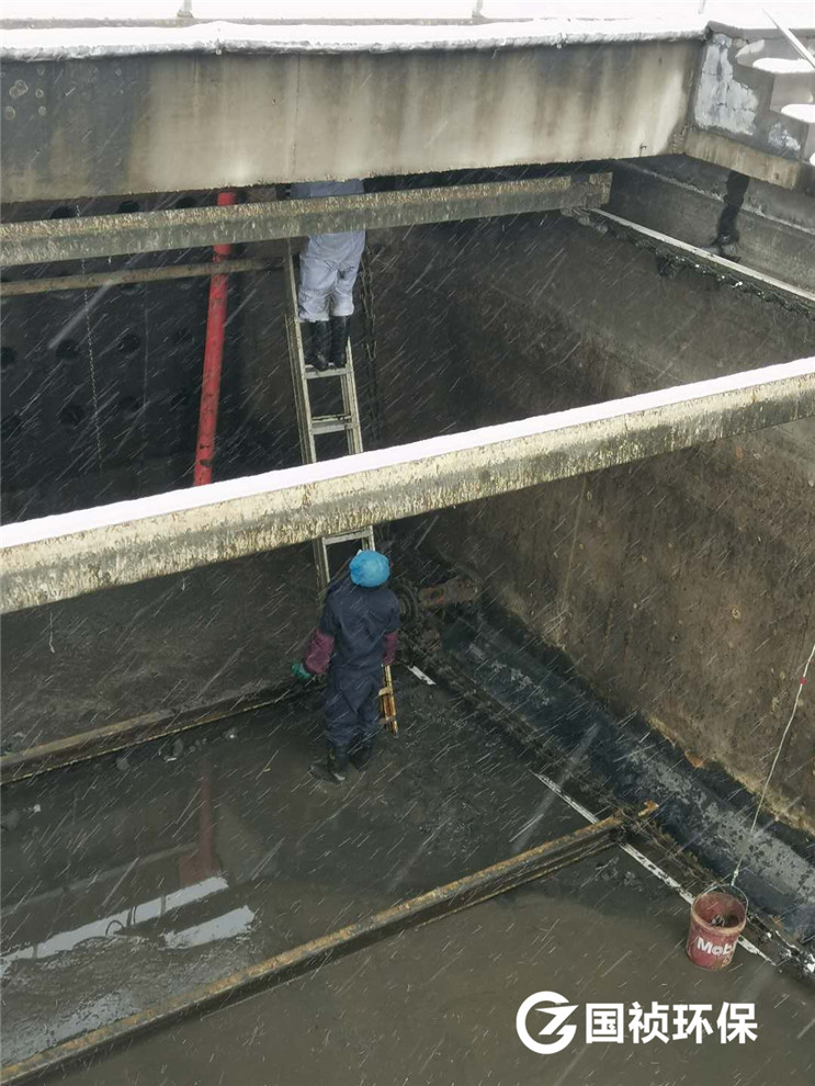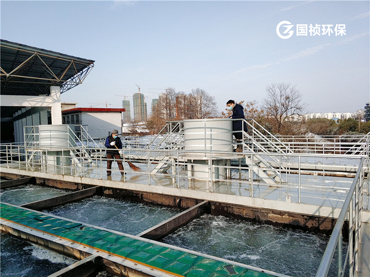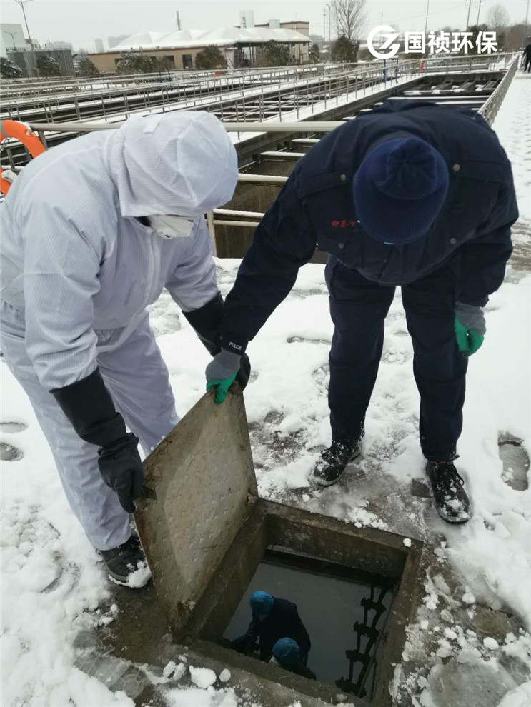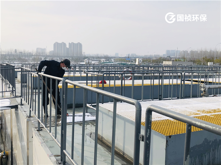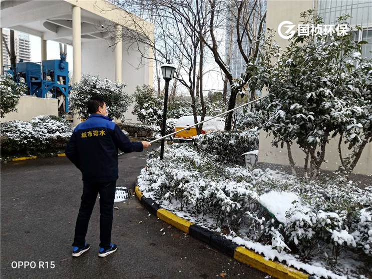 南京市鼓楼梅家塘净水站工作人员清扫积水