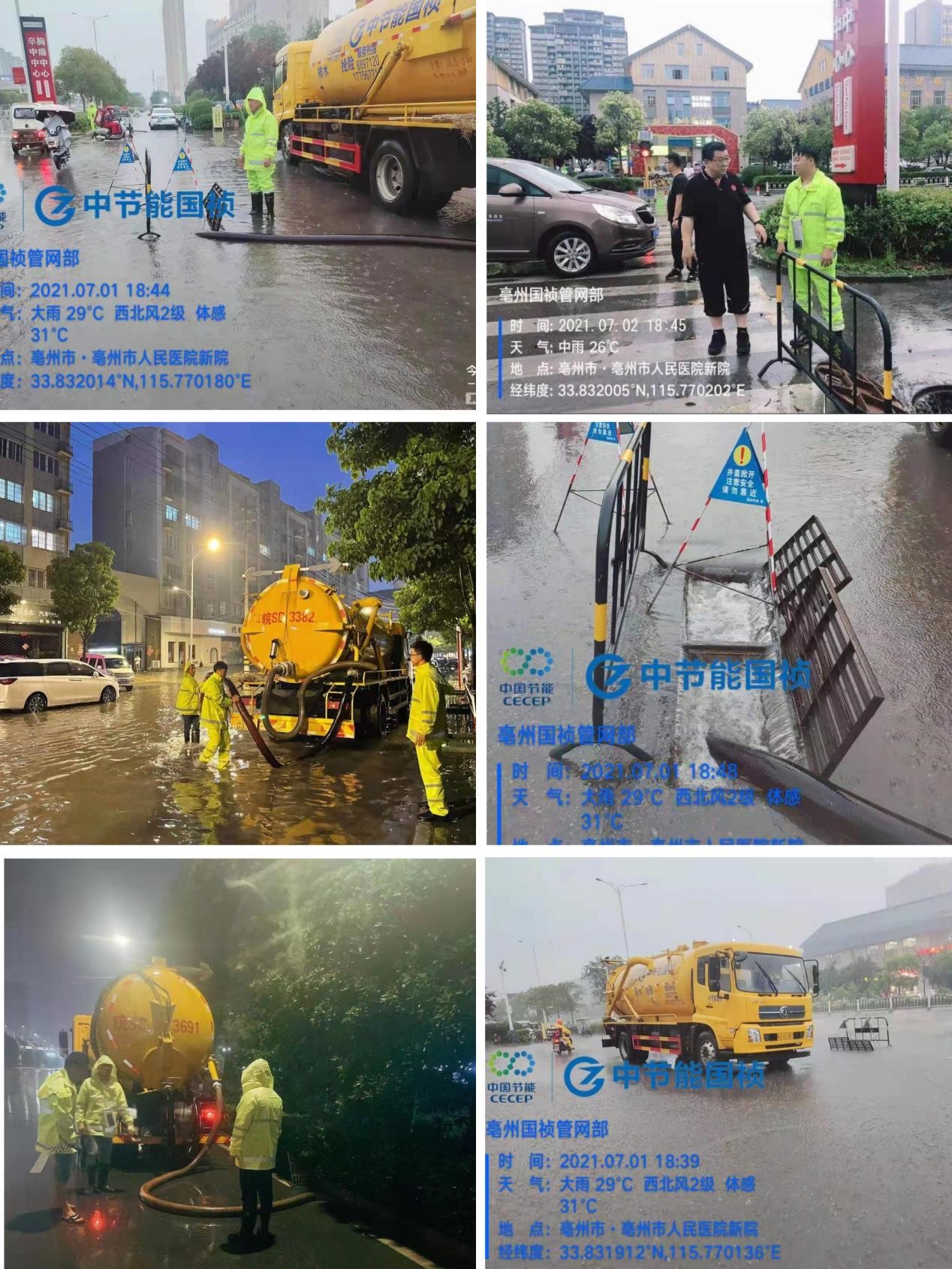 7月1日至9日,安徽省内多地强降雨,为全面做好本次强降雨的防范应对工作,扎实做好防风险、保安全、护稳定,中节能国祯管网合肥区域、郎溪区域、亳州区域再次吹响防汛集结号,进入全员战斗状态。