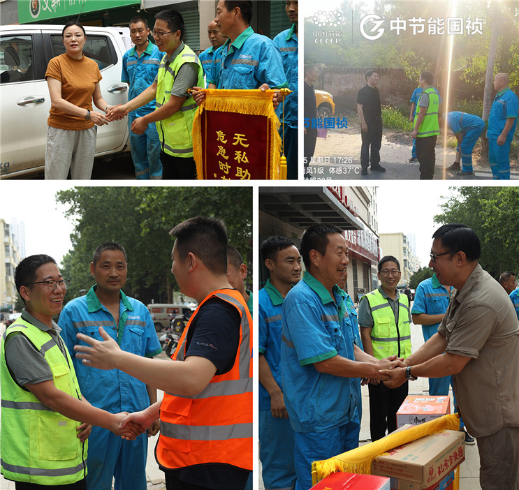 抢险突击队排水作业点所在社区和附近居民为抢险突击队送水、送饭、送锦旗,夹道欢送抢险突击队转移作业地点,特别感谢中节能国祯抢险突击队辛勤劳动和无私奉献,纷纷为抢险突击队的综合素质、工作态度和能力点赞。