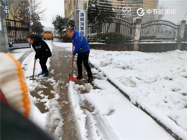 合肥区域胡大郢污水处理厂清扫地上公园积雪