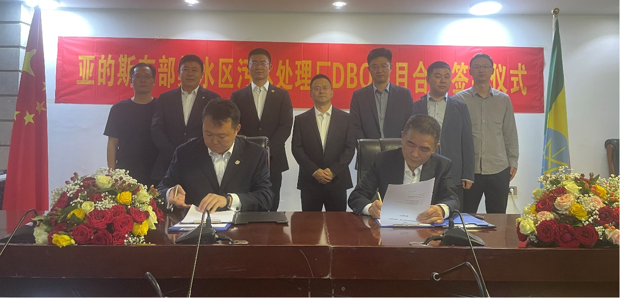 近日,公司与中地海外集团在埃塞俄比亚签订亚的斯东区污水处理厂DBO项目合作协议。公司副总经理殷皓,工程公司执行董事徐辉、中地海外集团埃塞公司总经理孙见琼等参加签约仪式。